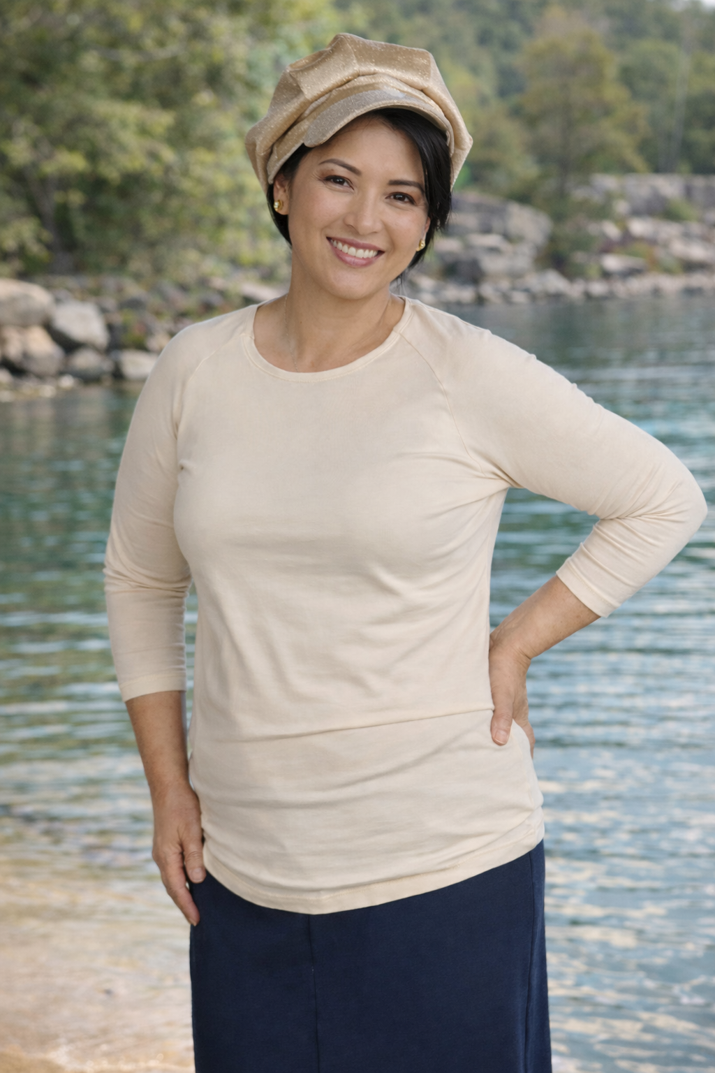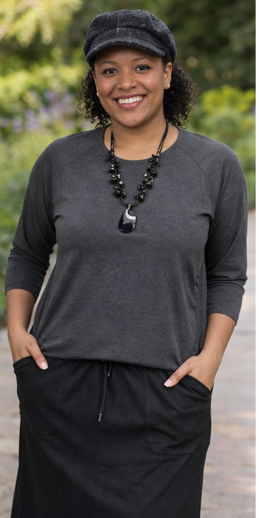 Modest Raglan Top – 3/4 Sleeve Loose Fit Tee for Women